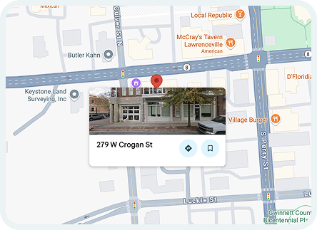We’re conveniently located in downtown Lawrenceville, GA, with free parking on-site and easy access from Snellville, Dacula, Grayson, Suwanee, and other Gwinnett County communities.